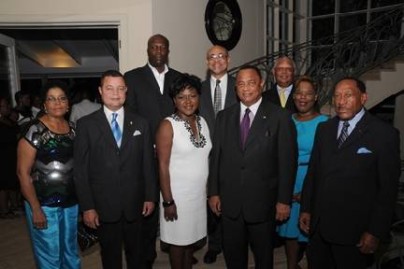 CELEBRATING 25 YEARS – Prime Minister the Rt. Hon. Perry G. Christie joined BOB (Bank of The Bahamas Limited) at a reception on October 18th to celebrate the bank’s 25th Anniversary of operation and contribution to nation building. The Prime Minister is pictured above at the Balmoral Club with BOB’s Chairman and Executive Management Team. Pictured from left to right: Mrs. Richard C. Demeritte; Paul McWeeney, Managing Director, BOB; Hubert Edwards, Deputy Managing Director, BOB; Renee Davis, Deputy Managing Director, BOB; Vaughn Delaney, Senior Deputy Managing Director, BOB; Prime Minister the Rt. Hon Perry G. Christie; Wayde Christie, Chief Operations Officer, BOB; Leashawn McPhee, Acting Deputy Managing Director, BOB; and Richard C. Demeritte, Chairman, BOB Board of Directors. (Photo by Wendell Cleare)